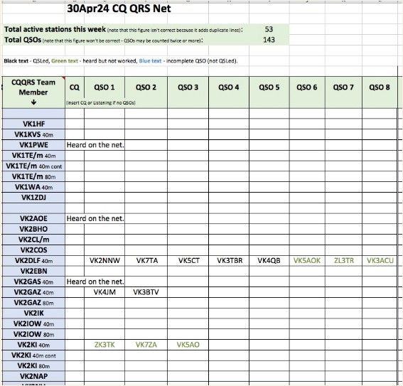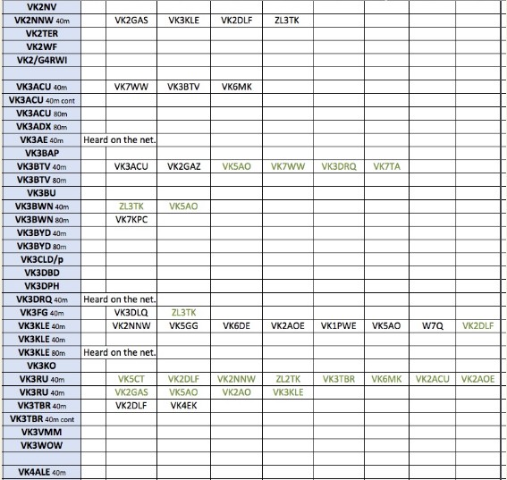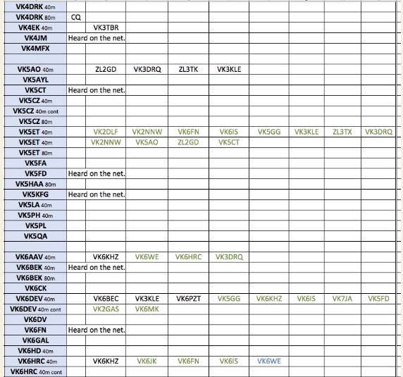 Thank you so much to our team of 33 contributors this week: VK6HD, VK3FG, VK7WW, VK3ACU, VK3TBR, VK3RU, ZL3TK, VK7TA, VK5ET, VK3BTV, VK6IS, VK6AAV, VK6KHZ, VK3KLE, VK2NNW, ZL2GD, VK7KPC, VK4DRK, VK6HRC, VK6PZT, VK1KVS, DL3YZ, VK2COS, VK5KFG, VK2NAP, VK3JFP, VK2DLF, VK2GAZ, VK3BWN, VK4EK, VK5AO, VK6DEV and VK6WE.