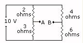 When compared to ground wave propagation, sky wave propagation usually has: * Much smaller effective range + Much greater effective range + The same effective range * Differing effective range depending of the weather The voltage across terminals A, B is: