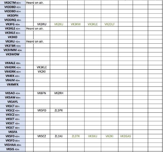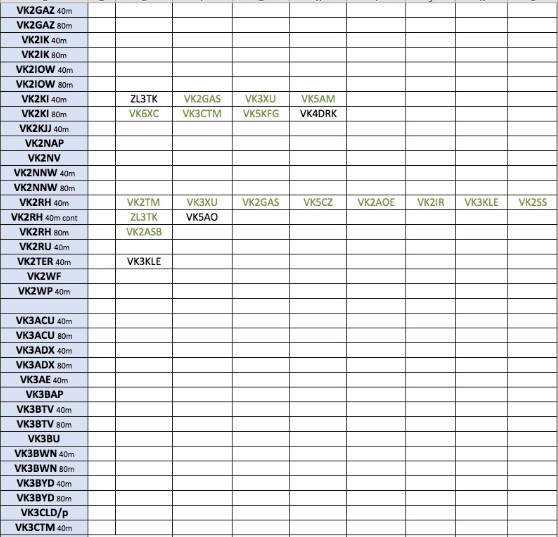 [40m] + Arguably one of the poorer nights, trans-Tasman propagation wasn’t playing ball at all + Fruitful in that a successful two way ‘Today in History’ QSO with VK2KI was heard by a number of others, including OM Ross MONNK via SDR – well done!