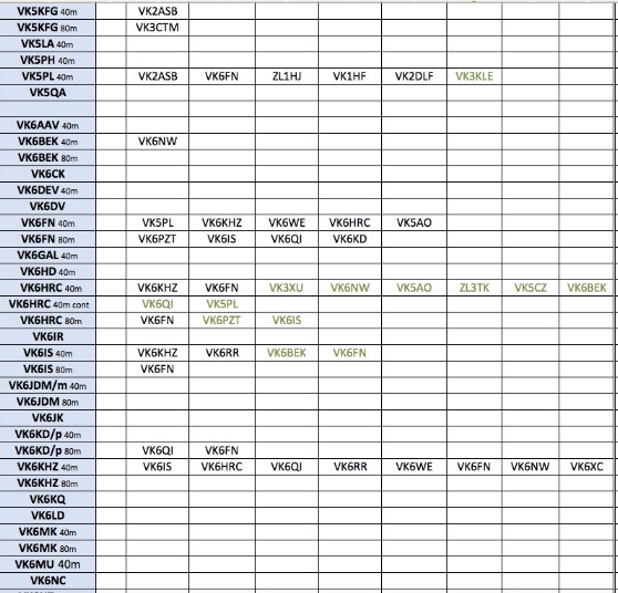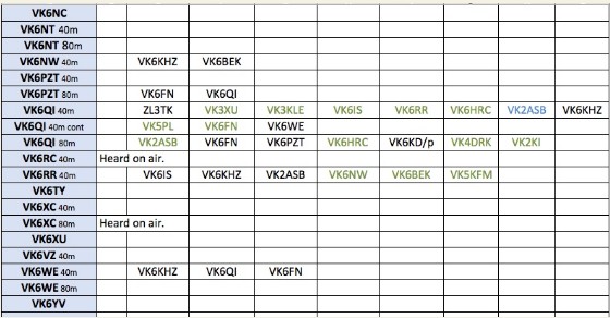 + Ialso heard Paul VKSKLE at Stawell, Richard VK6HRC at Padbury and Peter VK6IS at Wundowie chatting to Roy VK6RR up at Geraldton.
