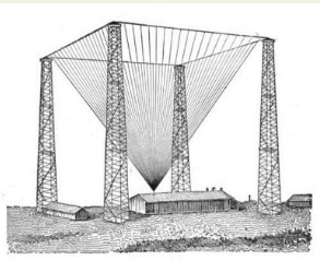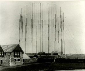 The original 20 mast circular cone shaped aerial was destroyed in a storm on 17 September 1901.