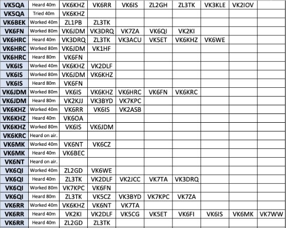 Mark still battling with a cold got on and made contacts on 40 mx and 80 mx as well as keeping the WhatApp alerts going. Bob got on and had a CW to SSB contact with Donald VK6JDM, great news indeed.