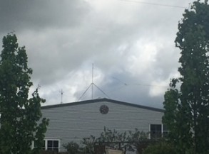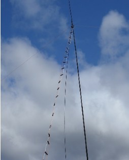 • Mid-way through the QSO my power dropped to about 10 Watts – it started raining here and the rope supporting the (would you believe) 300 Ohm TV ribbon (the temporary feeder I put up 10 months ago – awaiting a proper balanced line to be built) started conducting; after much re-tuning of my T-match, I was able to produce 50 Watts as expected again