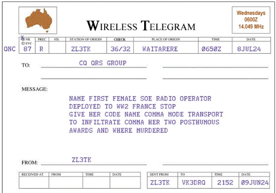 ‘Two Examples of Traffic Handling by Stan ZL3TK It wasn’t planned, but circumstances provided an opportunity to demonstrate simple traffic handling to the CQ QRS Group on Tuesday.