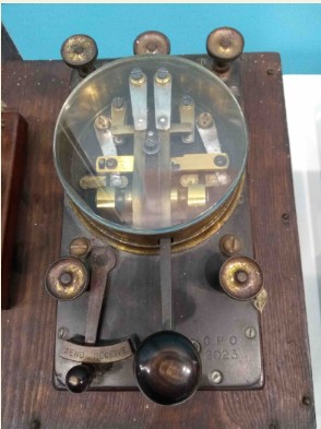 Marked “G.P.O. 2023” and with a “SEND RECEIVE” lever next to the main lever, it was a telegraph key used by the General Post Office operators (double current, Vulcanite base).