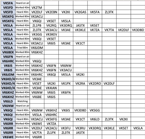 Thank you so much to our team of 32 contributors to this week’s newsletter: DL3YZ, LU7YS, MONNK, VK1HF, VK2DLF, VK2EBN, VK2GAS, VK2JCC, VK2TEV, VK3ACU, VKS3AE, VK3AFH, VK3DRQ, VK3JFP, VK3KEV, VK5ET, VK5FD, VK5KFG, VK5LA, VK6BEK, VK6HRC, VK6IS, VK6JDM, VK6KD/4, VK6KHZ, VK6PZT, VK6RR, VK6WE, VK7TA, VK7ZA, ZL2GD, ZL3TK – bloody outstanding work all!