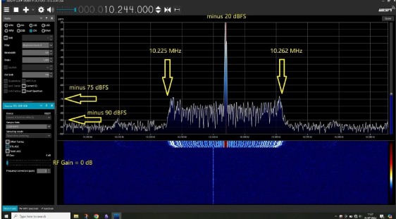 Mike DL3YZ suggested using only a “rostige Buroklammer” (German: rusty paperclip) antenna fo! the SDR and I’m jolly glad I did because, being sat right under the dipole, the signal came booming in even with the RF Gain dialled back to zero.