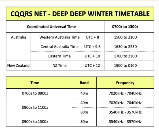 We’ll have fun. And don’t forget, Mike DL3YZ will also be calling CQ VK QRS on 20m at the times specified above.