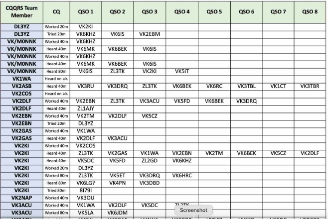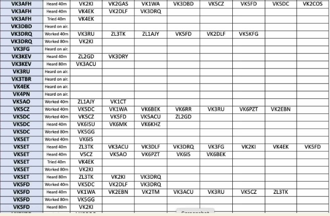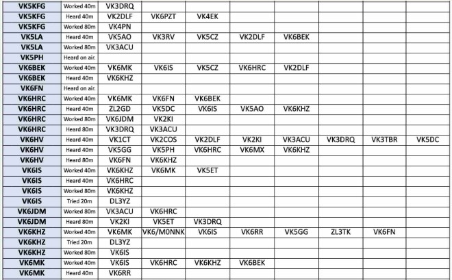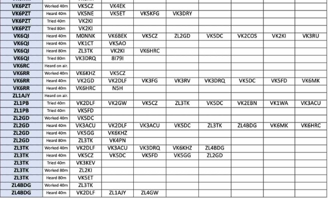 Thank you so much to our team of 36 contributors: DL3YZ, VK/MONNK, VK2ASB, VK2DLF, VK2EBN, VK2EBN, VK2GAS, VK2GAZ, VK2NAP, VK3ACU, VK3AFH, VK3DBD, VK3DRQ, VK3JFP, VKSKEV, VK5AO, VK5CZ, VK5DC, VK5ET, VK5FD, VK5KFG, VK5LA, VK6BEK, VK6HRC, VK6HV, VK6IS, VK6JDM, VK6KHZ, VK6MK, VK6PZT, VK6RR, VK6TY, ZL1PB, ZL2GD, ZL3TK, ZL4BDG.