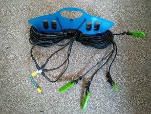 Guy lines. I promise you, it’s a long tedious exercise in frustration. Do yourself a favour and leave the guy lines at home. Instead use (Velcro) straps to attach your mast to a fence post, gate, sapling, vehicle or just about any fixed structure.