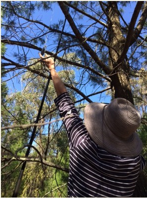 Ms E up atree – retrieving another 80z sinker!