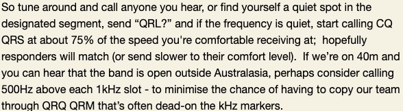 I see that our team mate Garry VK2GAZ is planning to be at Wollongong Head / Flagstaff Point (noting that Garry has had a change of circumstances and may or may not be able to get to Wollongong this year – we’ll see), and it’s likely that other CQQRSers (perhaps Nigel VK6NI and others) may be involved in one of the Club stations – so I’m hoping that there’ll be some more CW opportunities this weekend.
