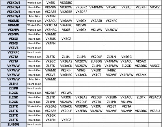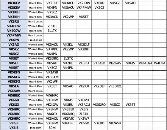 But in the mean time, please just use the 80m report area (Separate out your 80m report from other bands of course), and when you enter the list of callsigns worked, heard or missed, please append an ‘@band’ to each callsign without a space (eg VK2KI@20 VK6QI@15 etc).