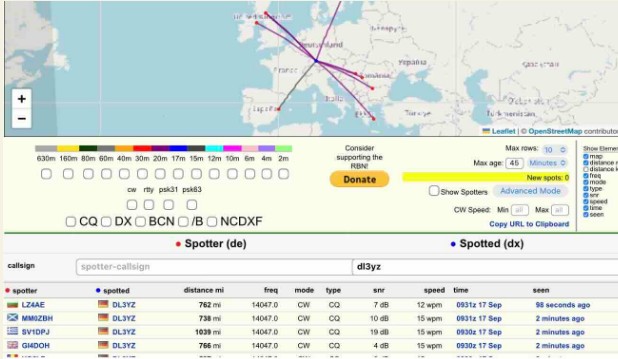 So on my next slot on the 15 m I had a hard time even to be heard by the nearby RBN stations here in Europe. Despite no one heard me, my new setup with the second hand 25 A power supply and the LiFePo both worked perfectly.