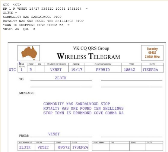 OM John VK5ET sent his first QTC consisting of three correct answers to a compound question. Very well executed!.