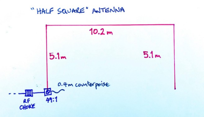 Half Square Antenna My latest home-brew antenna for DX is the “Half Square”, cut for 20m.