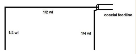 The Half Square antenna can be fed at the top corner into the horizontal element (the coax sheath being connected to the vertical element).