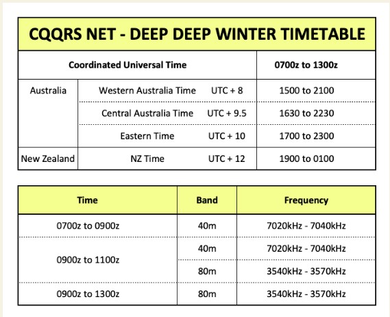 Please let me know via our Reports form bit.ly/CQQRSNET who you work or hear on Tuesday’s Group. For stations on other bands, please just use the 80m report area (separate out your 80m report from the other bands), and when you enter the list of callsigns worked, heard or missed, please append an ‘@band’ to each callsign without a space (eg VK2KI@20 VK6QI@15 etc).