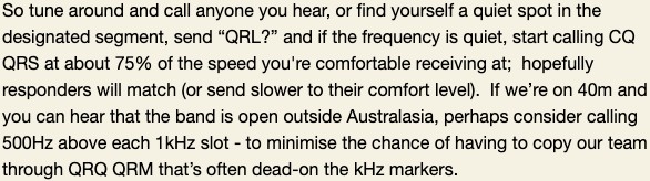 Although originally organised for both new and experienced VK and ZL CW operators, our intrepid team members in Germany, the UK, Argentina and the US also join in the fun.