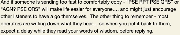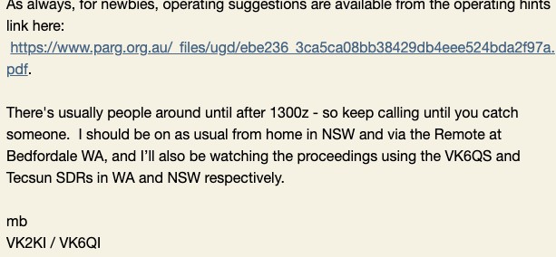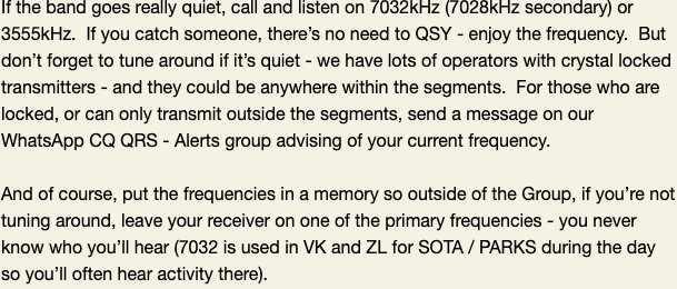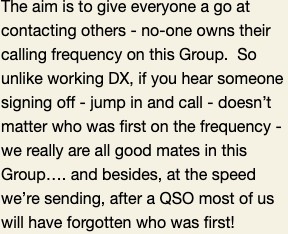 Getting reports from stations and listeners is important to me – even if you listened and didn’t hear anyone or weren’t able to copy anything – the fact that you had a go needs to get recorded so we know that the Group is working and attracting new and old team members to have a go.