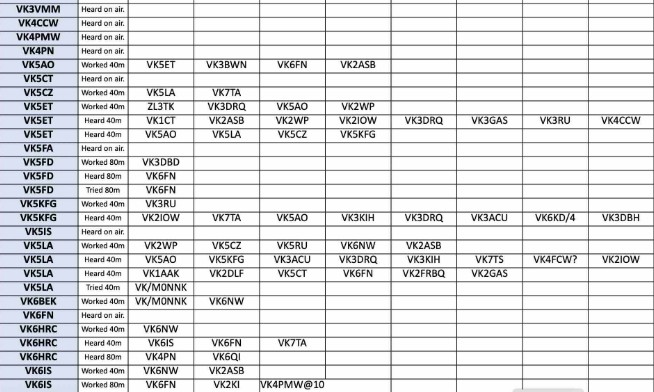 Thank you so much to our team of 35 contributors this week: DL3YZ, VK/MONNK, VK2ASB, VK2GAS, VK2GAZ, VK2IOW, VK2RU, VK2WP, VK3ACU, VK3AFH, VK3BTV, VK3BWN, VK3CTM, VK3DRQ, VK3JFP, VK3RU, VK5A0, VK5CZ, VK5ET, VK5FD, VK5KFG, VK5LA, VK6BEK, VK6HRC, VK6IS, VK6KD/4, VK6ENW, VK6PZT, VK6RR, VK6WE, VK7WW, VK7KPC, VK7TA, VK7WW, ZL3TK.