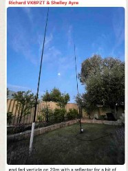Two sauid poles set up as driven elemer and reflector for a bit of gain on the Long Path to the UK and Germany. But alas I didnt hear Ross or Mike. However, I did call CQ and got a responce from AC7GG in the USA.