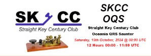 SKCC Oceania QRS saunter from Garry VK2GAZ The SKCC Oceania QRS Saunter will take place this Saturday, 19TH October, 2024 from 00:00 UTC until 11:59 UTC a 12 hour event. All are welcome to join in!