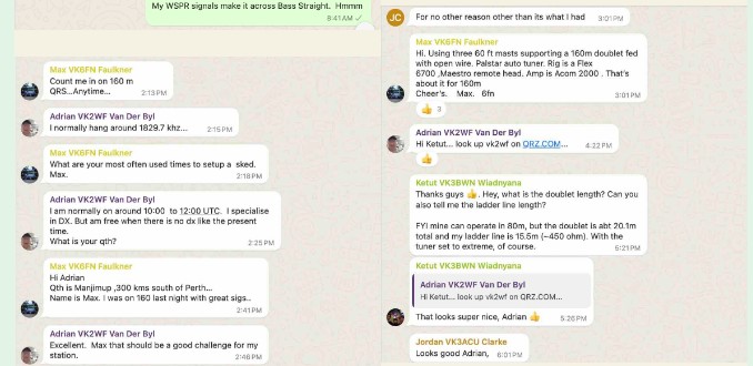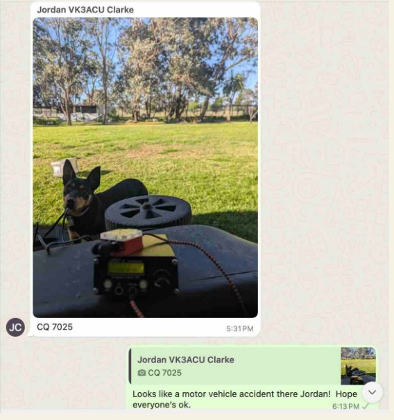 Then next thing, I’m not sure whether I sent VK2KD instead of VK2KI when I was typing on WhatsApp in parallel or listening to who else is on the band. Sorry David – I’ll try harder next time..