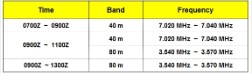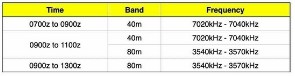 There’s usually people around until after 1300Z on the Tuesday Group – so keep calling in the segment of the band designated in the table below until you catch someone.