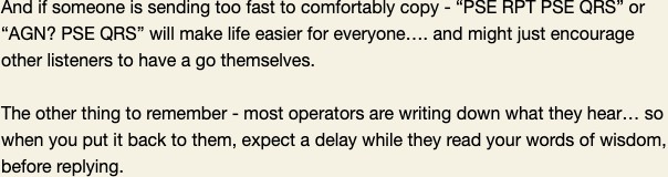 If you’re proficient at CW and can race along at 20 or 30WPM – terrific, but please remember, the Group’s aim is to encourage participation and learning, not show how fast you can hammer the key.