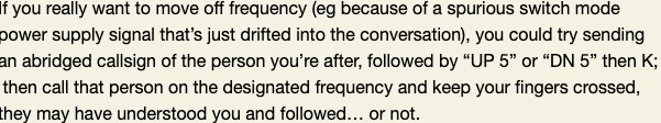 And if you are already having a QSO and someone sends “QRL?”, respond with “R”, “C”, “Y”, “YES” or QRL to let the caller know that the frequency is in use.