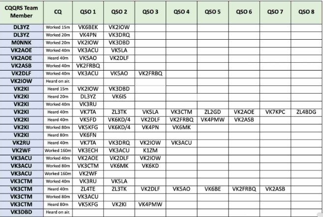 Thank you so much to our team of 34 contributors: DL3YZ, MONNK, VK2AOE, VK2ASB, VK2DLF, VK2RU, VK2WF, VK3ACU, VK3CTM, VK3DRQ, VK3JFP, VK3KEV, VK3VMM, VK5AO, VK5FD, VK5KFG, VK5LA, VK6BEK, VK6FN, VK6GX, VK6HRC, VK6IS, VK6KD/4, VK6MK, VK6NW, VK6RR, VK6WE, VK7KPC, VK7TA, VK7WW, ZL1PB, ZL3TK, ZL4BDG, ZL4TE.