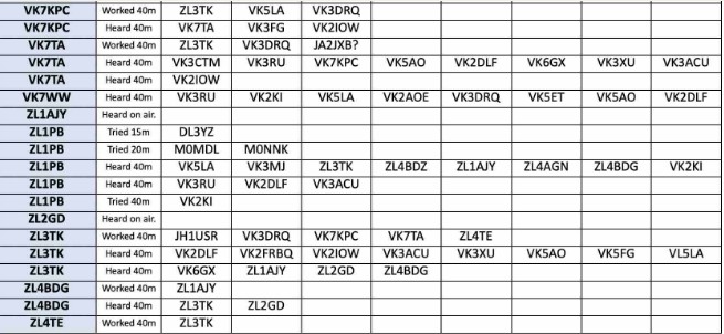 Mark was busy as usual spotting on WhatsApp and listening on multiple SDR nodes, and even had time for some contacts ! Stan had five contacts on 40 Mx 2 traffic exchanges and more regular contacts from ZL stations than usual.