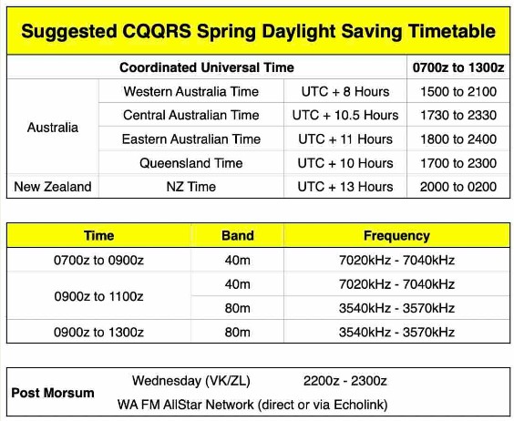 If we’re on 40m and you can hear that the band is open outside Australasia, perhaps consider calling 500HZ above each 1KHZ slot – to minimise the chance of having to copy our team through QRQ QRM that’s often dead-on the kHz markers.
