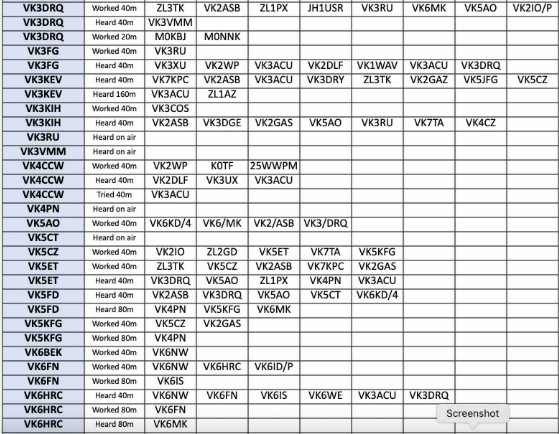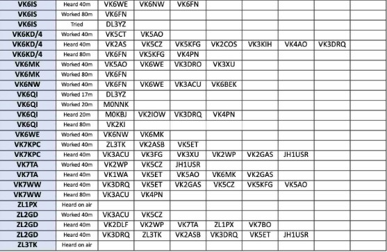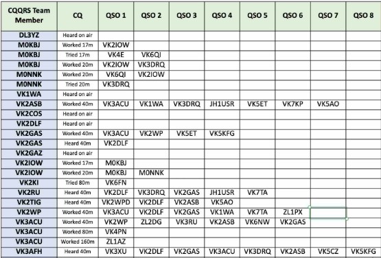 Thank you so much to our team of 36 contributors: MOKBJ, MONNK, VK1KVS, VK2ASB, VK2GAS, VK2IOW, VK2RU, VK2TIG, VK2WP, VK3ACU, VK3AFH, VK3DRQ, VK3FG, VK3JFP, VK3KEV, VK8KIH, VK4CCW, VK5A0, VK5CZ, VK5ET, VK5FD, VK5KFG, VK6BEK, VK6FN, VK6GX VK6HRC, VK6IS, VK6KD/4, VK6MK, VK6NW, VK6WE, VK7KPC, VK7TA, VK7WW, ZL2GD, ZL3TK.