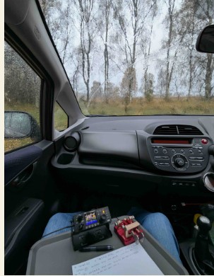 • | was excited to wake up at 5.10am and drive through the darkness and rain for half an hour to reach my chosen QTH. + I was operating portable in a forest cai park near to the German military cemetery at Cannock Chase, Staffordshire, UK, which is the peaceful resting place for 5000 soldiers from WW11 and WW2, using the full 20W from my Xiegu G90 and JPC-12 vertical antenna.