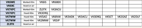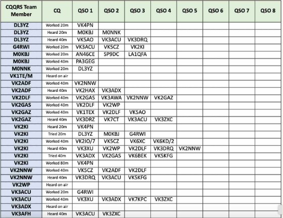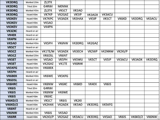 Thank you so much to our team of 26 contributors: DL3YZ, G4RWI, MOKBu, MONNK, VK2ADF, VK2DLF, VK2GAS, VK2GAZ, VK2NNW, VK3ACU, VK3AFH, VK3DRQ, VK3KEV, VK5AO, VK5CZ, VK5ET, VKSKFG, VK6BEK, VK6HRC, VKEIS, VK6KD/2, VK6NW, VK6RR, VK6WE, VK7KPC, VK7WW.