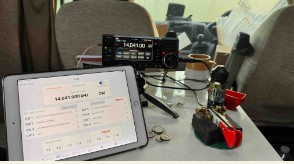 - Dean VK6DSL at The Vines getting the keying of his FT-817 sorted out for the —>