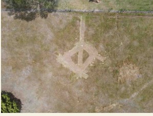 The loop is laid flat on the ground. I prepped the area by mowing the grass down to nearly bare dirt, then secured
