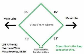 | recently built a LOG (Loop on the Ground) antenna with a perimeter of around 18 meters (approximately 15 feet per side).