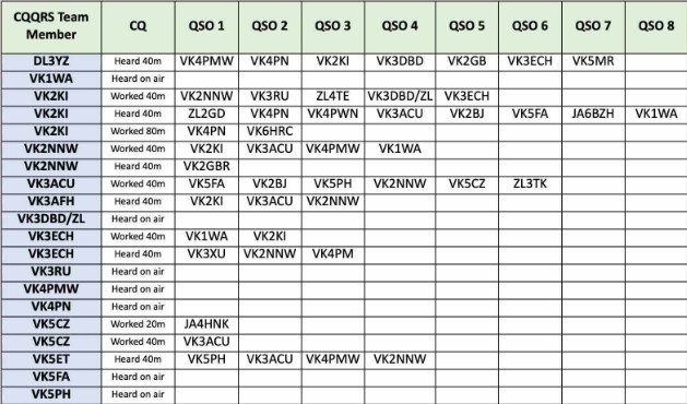 If we’re on 40m and you can hear that the band is open outside Australasia, perhaps consider calling 500HZ above each 1KHZ slot – to minimise the chance of having to copy our team through QRQ QRM that’s often dead-on the kHz markers.