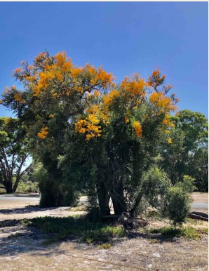 WA Christmas tree A These are a parasitic mistletoe endemic to WA and so named because they flower right at Christmas time each year.