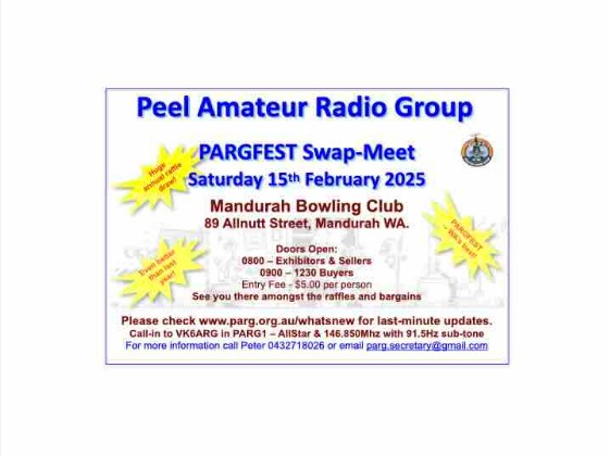 This raffle is being held for Peel Amateur Radio Group Inc 1/12 Brackenridge Lane, Meadow Springs, WA, 6210. The raffle commences on the 16TH of November 2024, closes on the 15TH of February 2025 and will be drawn on the 15TH of February 2025 at Mandurah Bowling Club.