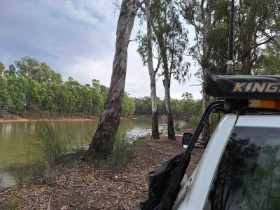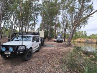 A quick snapshot of my camping site at River’s Edge bush camp, 15 min out from Echuca. We had some friends camping with us in their Troop carrier/camper. They were on there way back from Tasmania to Perth. 73s David VK6KD/3