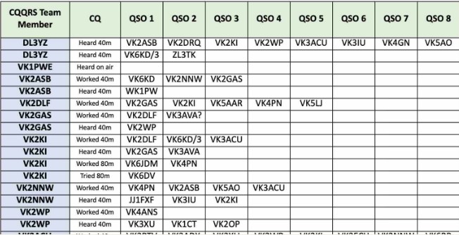 If we’re on 40m and you can hear that the band is open outside Australasia, perhaps consider calling 500HZ above each 1KHZ slot – to minimise the chance of having to copy our team through QRQ QRM that’s often dead-on the kHz markers.