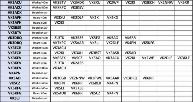 If you hear or work one of our team on a different band on Tuesday, please just use the 80m report area and use the instructions to annotate which bit applies to which band. Cheers, mb Mark Bosma VK2KI!