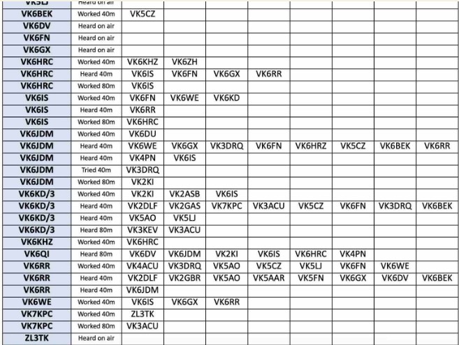 WOO MS Use hee yy Lue 2) * VK6KD/3 David + VK6QI Mark * VK6FN Max * VK6HRC Richard and our SWLs including Mulligan, VK6MRB a regular checked in before the net.