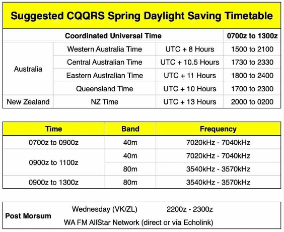 Please let me know via our Reports form bit.ly/CQQRSNET who you work or hear on Tuesday’s Group. The report form closes at lunchtime (Eastern Australian time) on Thursday.