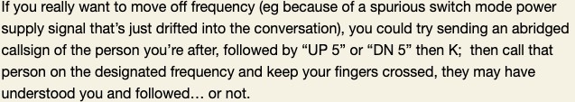 If the band goes really quiet, call and listen on 7032KHZ (7028KHZ secondary) or 3555KHZ. If you catch someone, there’s no need to QSY – enjoy the frequency.