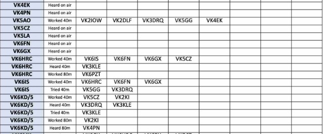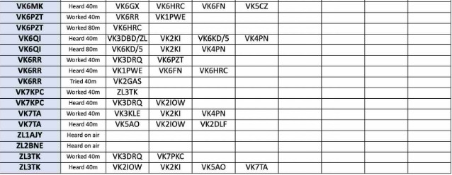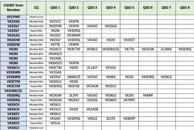 Thank you so much to our team of 28 contributors: MONNK, VK1HF, VK2ASB, VK2DLF, VK2GAS, VK2IOW, VK3ACU, VK3AFH, VK3BWN, VK3CTM, VK3DBD, VK3DRQ, VK3ECH, VK3KEV, VK3KLE, VK83WOW, VK5A0, VK6DON, VK6HRC, VK6IS, VK6JDM, VK6KD/5, VK6MK, VK6PZT, VK6RR, VK7KPC, VK7TA, ZL2BNE and ZL3TK.